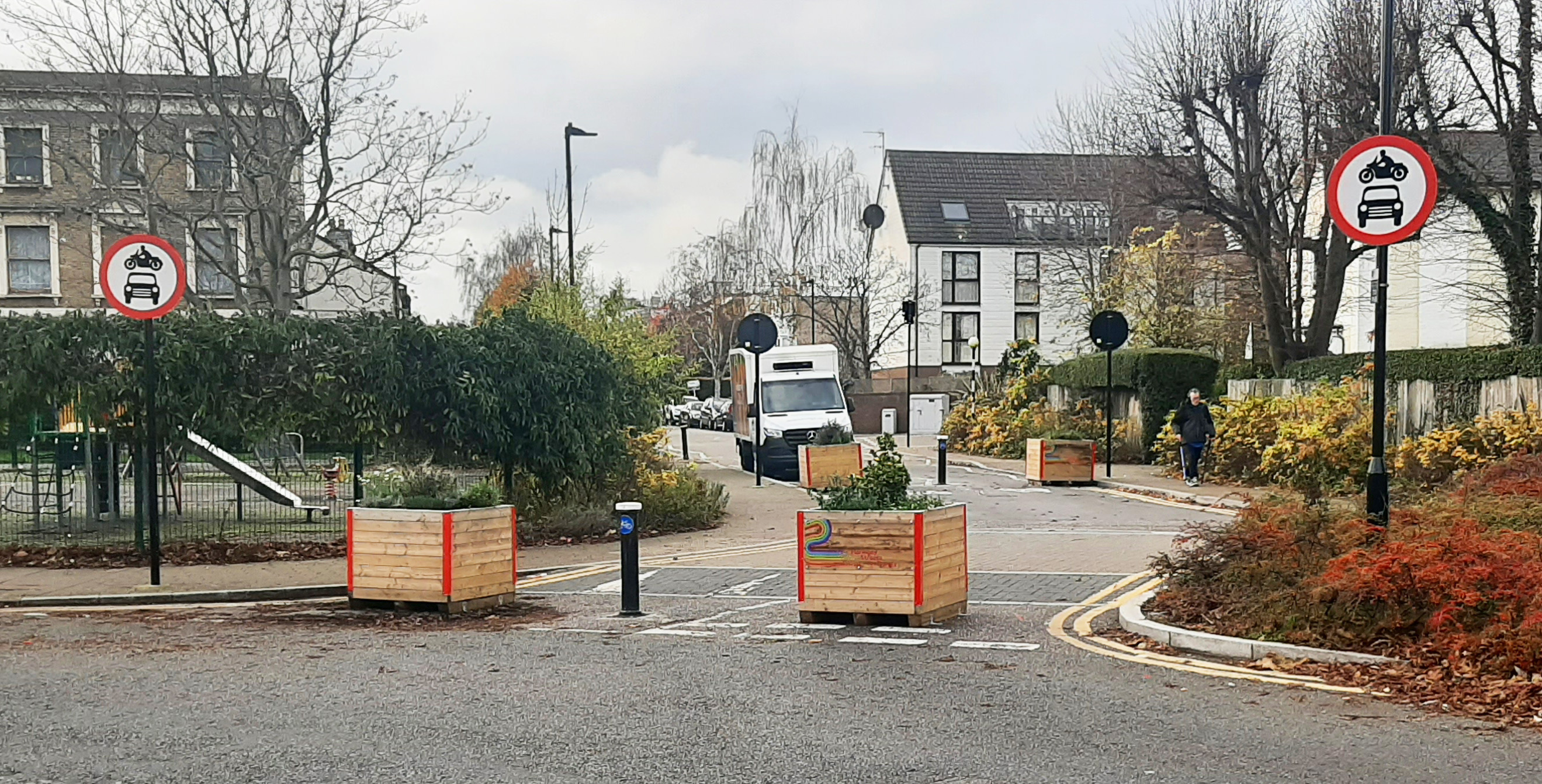 Initiated in 2021 as part of the borough’s Walking and Cycling Action Plan, the three LTNs addressed long-standing concerns about traffic congestion, air pollution, and road danger. Covering 84km (19% of the borough’s road network), the project implemented temporary measures such as bollards and traffic signs across three key areas to reduce through-traffic, improve air quality, and promote active travel.